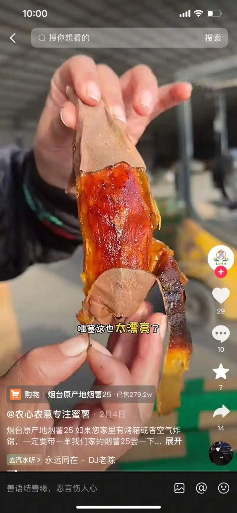 2018年,农心农意创始人鞠全智在抖音上发的烤红薯视频火了,许多粉丝在评论区向他请教怎么才能买到烤出散发着诱人香气的红薯。这一商机让他在第二年抖音刚开放小店时便毅然入驻,并开启了“短视频+直播”的电商生涯。
