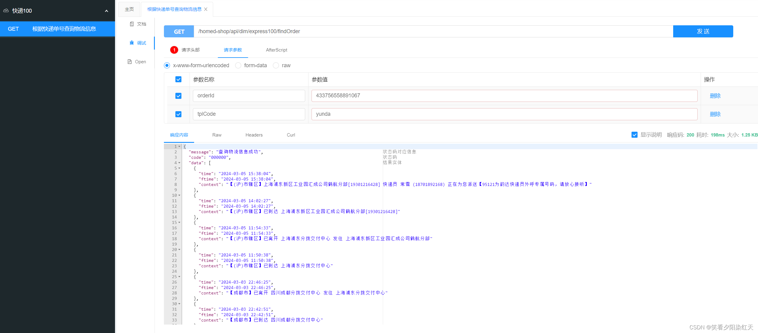 根据快递接口的文档,通常需要实现以下核心功能:下单接口、物流查询接口和取消订单接口。以物流查询为例,具体步骤如下: