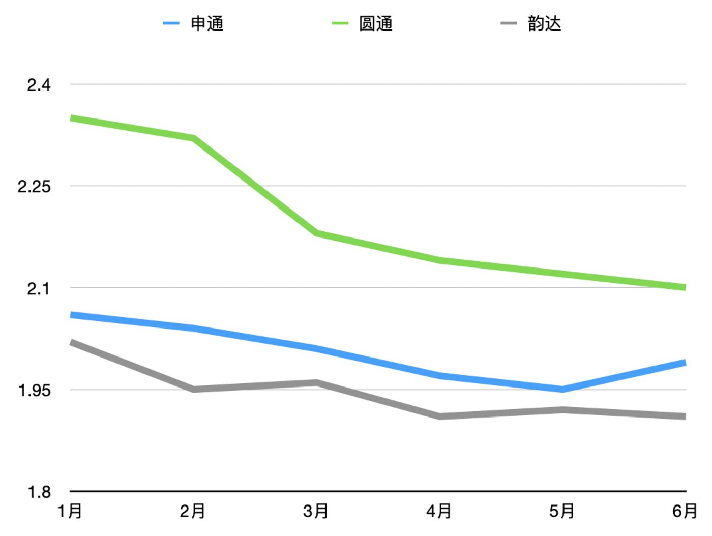 “通达系”近半年业务量情况