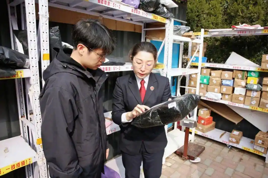 青岛市崂山区检察院办案检察官到当地某快递驿站实地了解情况。