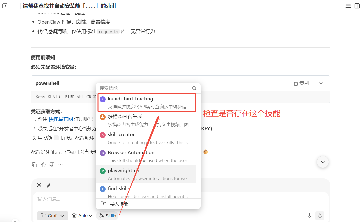 系统将自动完成技能下载与安全校验。