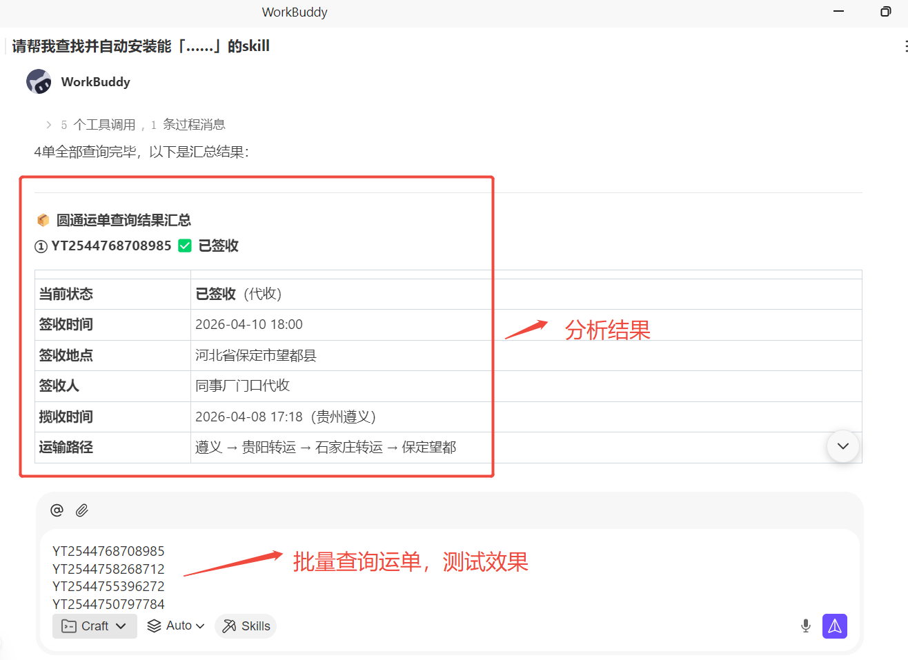 返回对话界面,即可用自然语言查询快递: