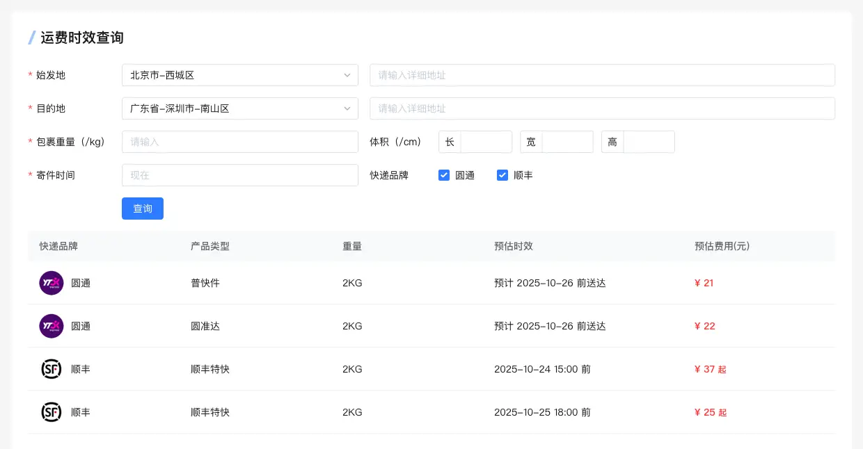 对企业而言,“选对物流商”与“算对运费”同样重要,API的多物流商比价功能直接帮助企业降低寄件成本。输入寄件参数后,API可同时输出多家合作物流商的运费报价及服务时效,例如“顺丰标快23元(次日达)、中通快递12元(3日达)、京东快递15元(2日达)”,并支持按“价格从低到高”“时效从快到慢”排序。某服装电商接入API后,通过优先选择“性价比最优”的物流商,每月寄件成本降低18%;对物流代理商而言,该功能可快速为客户提供多方案报价,报价效率提升3倍,客户成交率显著提高。