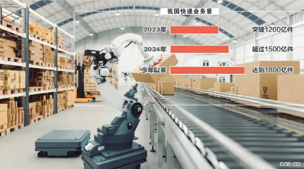 从2023年首次突破1200亿件关口,到2024年首次超过1500亿件,再到今年年内已经达到1800亿件,快递行业在快速奔跑中。
