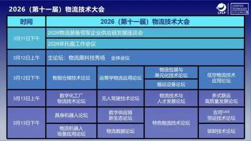 为汇聚行业智慧、展示前沿成果、共绘发展蓝图,由中国物流与采购联合会主办、物流装备专业委员会承办的“科技YU见未来“——2026(第十一届)物流技术大会将于3月11日-13日在湖州召开,诚邀行业同仁共聚。