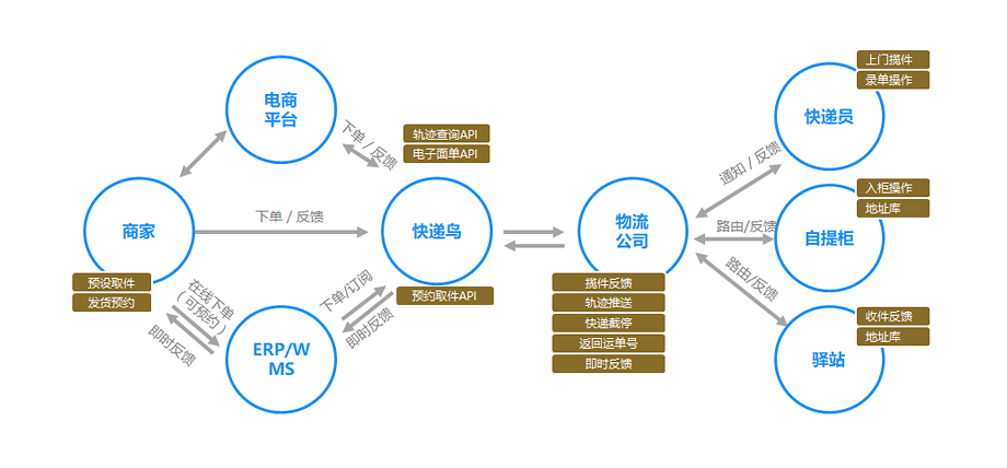 通过ERP系统完成打单后,回传运单号至平台时同时通知快递员揽件。