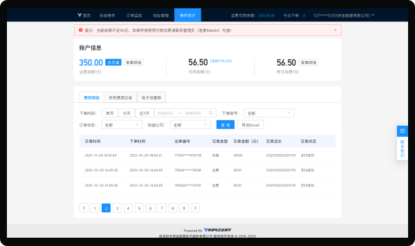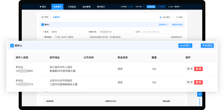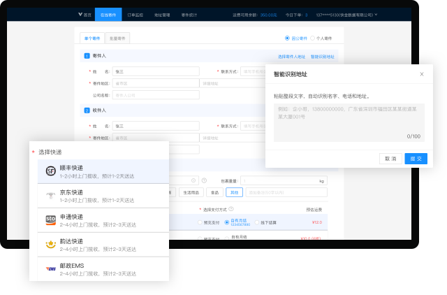 企业多员工统一在线寄件、统一结算管理/个人用户在线寄快递,退货寄件和跟踪管理。